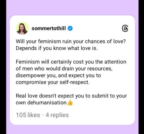 All of this reminds me of a well-meaning friend, years ago, pre-babies and husband, telling me to remove the word âfeministâ from my Tinder profile. It would reduce my number of connections, she said. As if a man who refuses to date a feminist is ever someone Iâd look at twice. As if my right to exist as equal on this earth to the men on it is a side issue, easily traded away for the comfort of being liked by them.